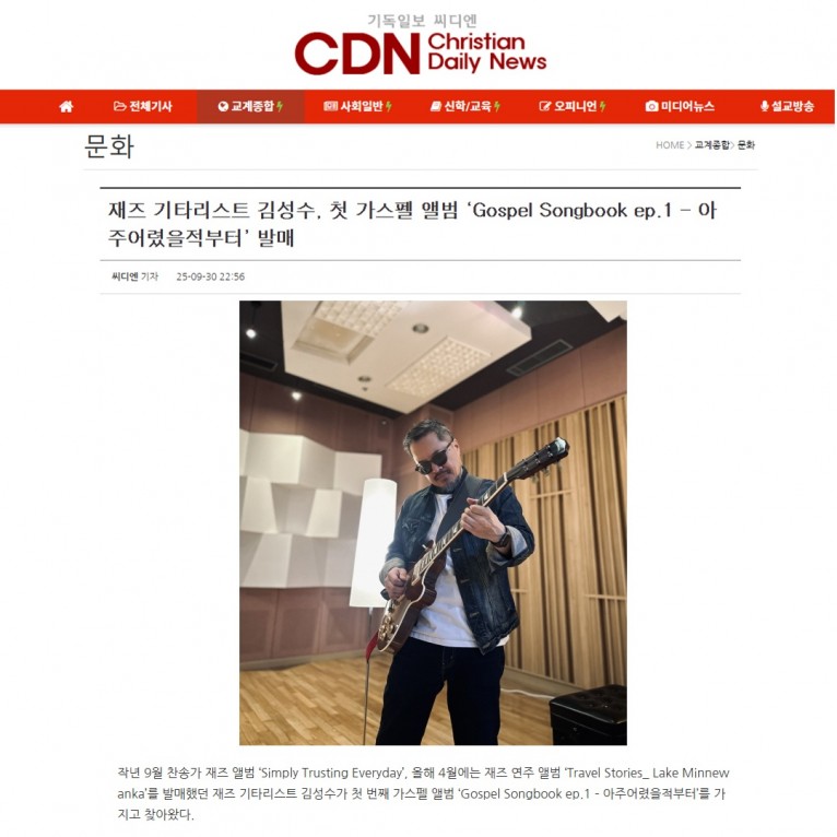 뮤직타임 [기사] 재즈 기타리스트 김성수, 첫 가스펠 앨범 ‘Gospel Songbook ep.1 – 아주어렸을적부터’ 발매(기독일보 …